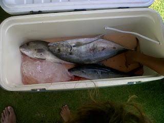 Enter water around 6:45, big swell, water visibilty was average, Low tide was around 1 meter. There was a lot small school of rainbow. so it was my first shot of the day.. i choose the biggest out of the crowd which was around 1.5 kg. Then i spotted 2 Golden Trevally and it took me to dive to finally spear one. The rest of the day only found smaller golden spotted trevally. There was Big 40 kg grouper but it was to far and it wont let you go close. After 1.5 hour the water was merky move to another spot and was so happy to see school of juvenile Dogtooth tuna. I hope in year is big enough to bring home.