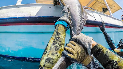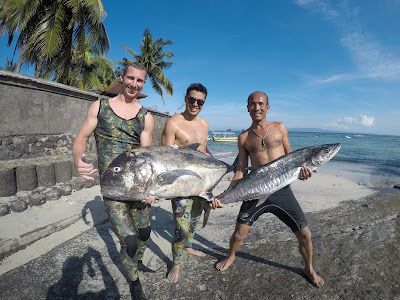 everything pay off Javier shot his first fish a good size unicorn fish, David shot Big trigger fish and John shot a big GT and spanish mackerel. I shoot some reef fish for my sister birthday BBQ
