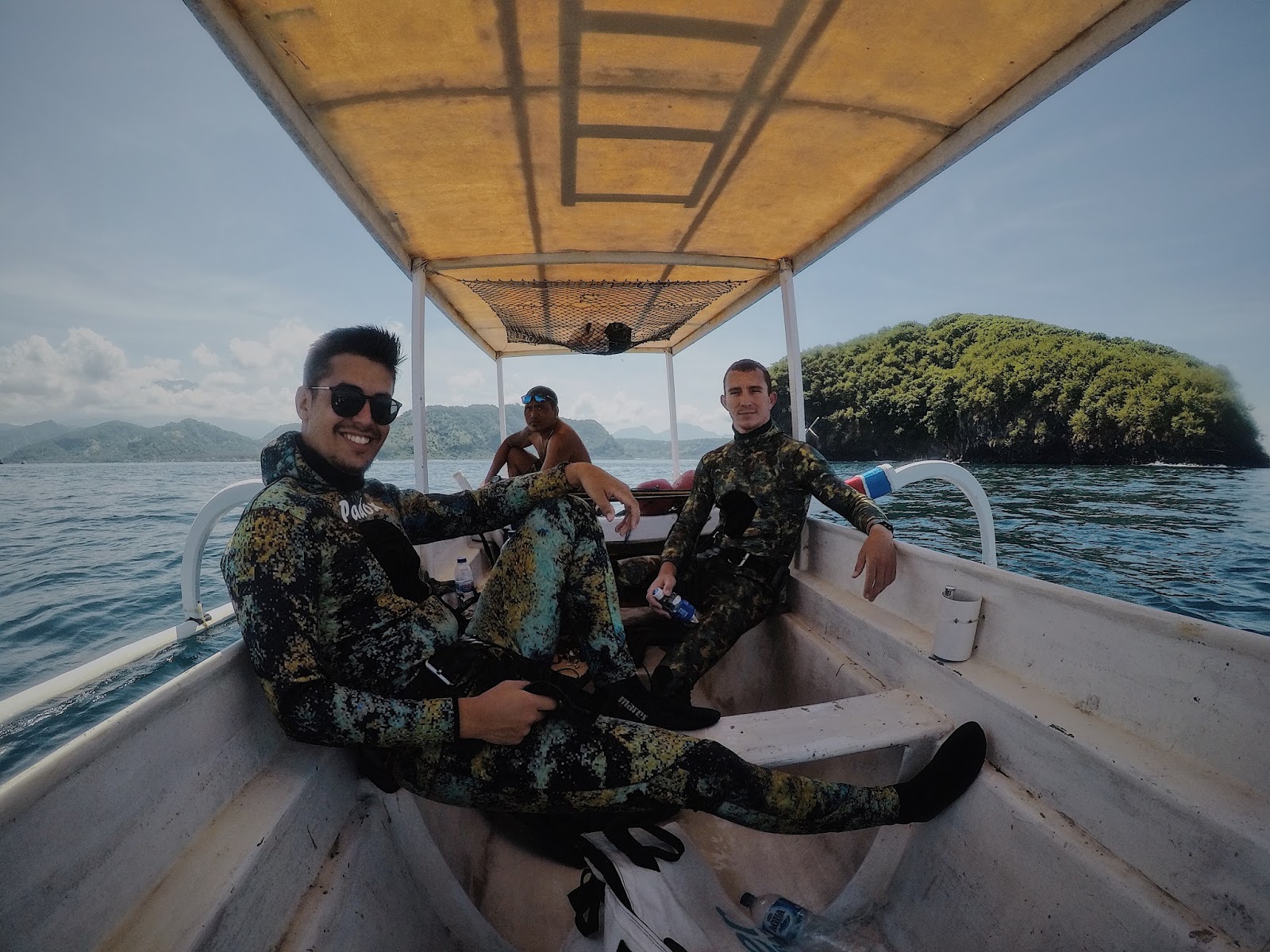 The car ride we had some good conversation about each our experience about life and spearfishing. when we arrive to the spot we were all pump up ready for some underwater shooting. Today is Javier First day, he never done any type of diving. When we all suit up Javier came out only with wetsuit top without the pant on. It was a good way to start have some laugh, relax your mind.