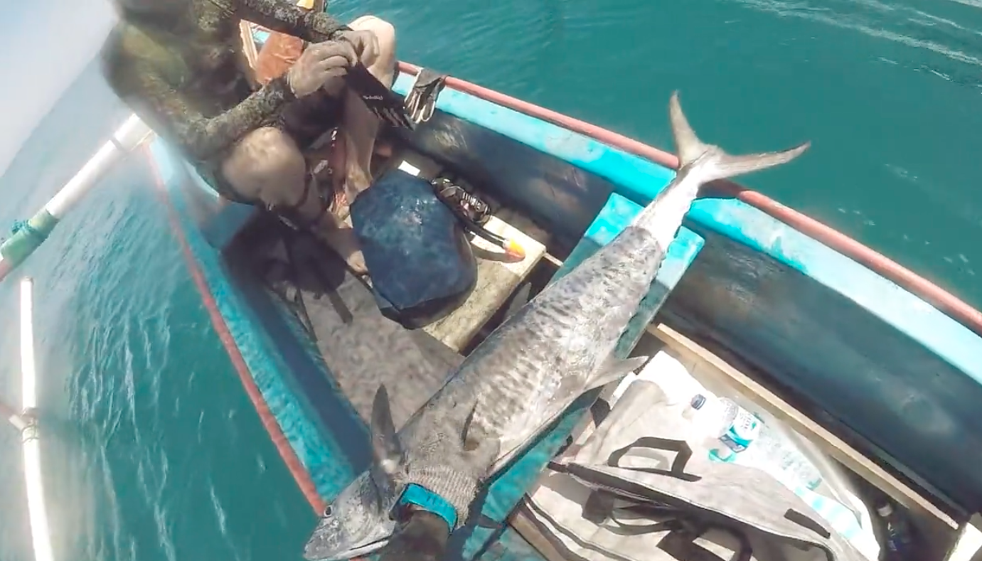 First Spot we found school baitball on the surface and we suspect there is something hunting around it. Our instinct was correct. The first dive Alex shot a queenfish. Then i made the second dive. I was not to prepare to expect Giant , i am talking about massibe Bigeye seabream coming straight for me. As soon i move the Speargun the swim away. Not long after i when up for a breath and Spanish mackerel swim right underneath me, i quickly dive down and got a good shot.